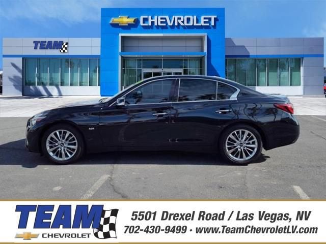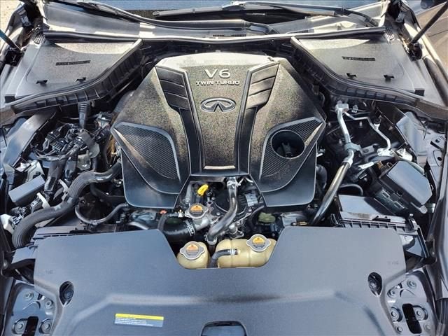Certified. Certification Program Details: Bumper-to-Bumper Limited Warranty 12-month or 12,000-mile limited bumper-to-bumper warranty 126-point inspection 24-hour Roadside Assistance Program Courtesy Transportation Vehicle history report OnStar and SiriusXM trials Clean CARFAX.Midnight Black 2020 INFINITI Q50 3.0t LUXE 4D Sedan RWD 7-Speed Automatic with Overdrive 3.0L V6 Local Trade In, Fresh Oil Change, Q50 3.0t LUXE, 4D Sedan, 3.0L V6, 7-Speed Automatic with Overdrive, RWD, Midnight Black, Graphite w/Leather-Appointed Seating Surfaces, 18 x 7.5 Aluminum Alloy Wheels, 4-Wheel Disc Brakes, 6 Speakers, ABS brakes, Air Conditioning, Alloy wheels, AM/FM radio: SiriusXM, Apple CarPlay/Android Auto, Auto-dimming Rear-View mirror, Automatic temperature control, Brake assist, Bumpers: body-color, CD player, Compass, Delay-off headlights, Driver door bin, Driver vanity mirror, Dual front impact airbags, Dual front side impact airbags, Electronic Stability Control, Four wheel independent suspension, Front anti-roll bar, Front Bucket Seats, Front Center Armrest, Front dual zone A/C, Front fog lights, Front reading lights, Fully automatic headlights, Garage door transmitter: HomeLink, Heated door mirrors, Illuminated entry, Leather Shift Knob, Leather steering wheel, Leatherette Seating Surfaces, Literature Kit, Low tire pressure warning, Occupant sensing airbag, Outside temperature display, Overhead airbag, Overhead console, Panic alarm, Passenger door bin, Passenger vanity mirror, Power door mirrors, Power driver seat, Power moonroof, Power passenger seat, Power steering, Power windows, Premium Paint, Radio data system, Radio: INFINITI InTouch w/AM/FM/HD/CD, Rain sensing wipers, Rear anti-roll bar, Rear reading lights, Rear seat center armrest, Rear window defroster, Remote keyless entry, Security system, Speed control, Speed-Sensitive Wipers, Steering wheel mounted audio controls, Tachometer, Telescoping steering wheel, Tilt steering wheel, Traction control, Trip computer, Turn signal indicator mirrors, Variably intermittent wipers.Recent Arrival! Odometer is 11583 miles below market average! 20/29 City/Highway MPG2020 INFINITI Q50 3.0t LUXE