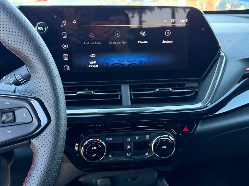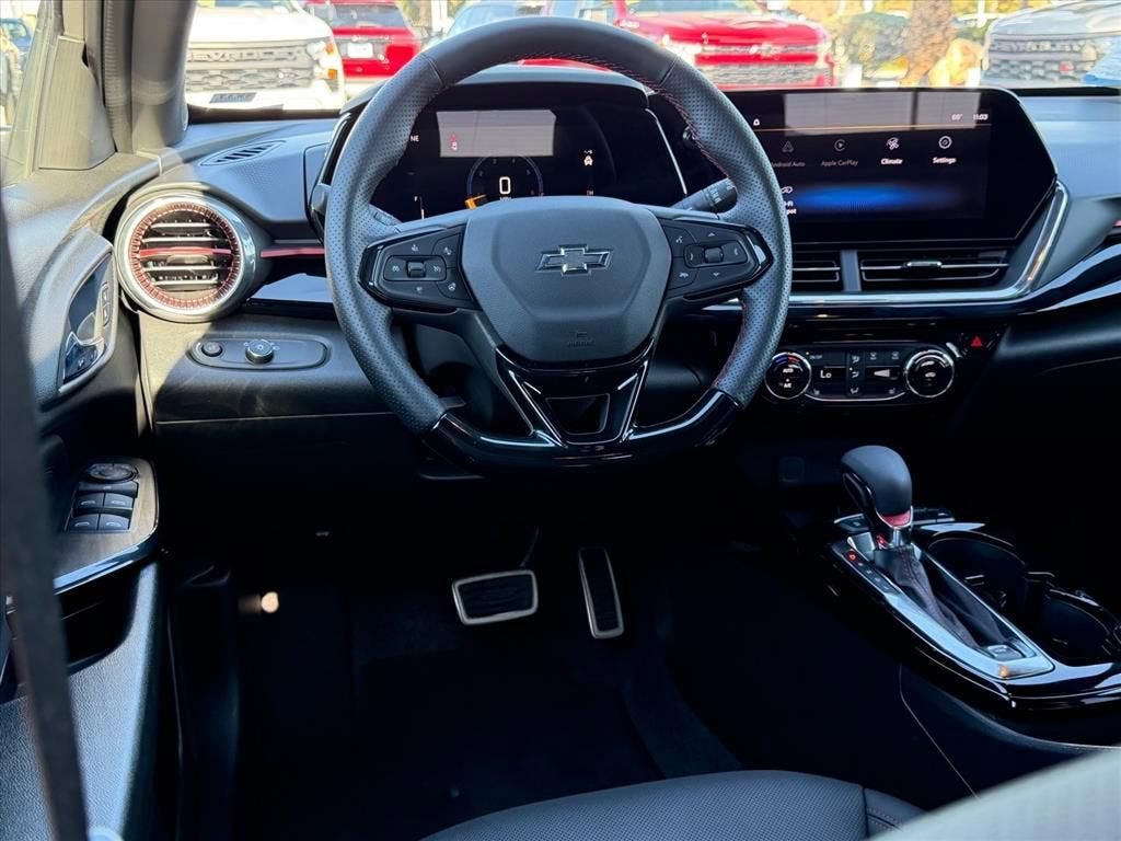 White Sands 2026 Chevrolet Trax 2RS 4D Sport Utility FWD 6-Speed Automatic ECOTEC 1.2L Turbo Local Trade In, Fresh Oil Change, Trax 2RS, 4D Sport Utility, ECOTEC 1.2L Turbo, 6-Speed Automatic, FWD, White Sands, Jet Black w/Red Accents w/Evotex Seat Trim, 2-Way Adjustable Front Head Restraints, 2-Way Power Driver Lumbar Seat Adjuster, 3 Years SiriusXM, 3.50 Final Drive Axle Ratio, 4-Way Manual Front Passenger Seat Adjuster, 4-Wheel Disc Brakes, 6 Speakers, 6-Speaker Audio System Feature, 8-Way Power Driver Seat Adjuster, ABS brakes, Adaptive Cruise Control, Air Conditioning, Alloy wheels, AM/FM radio: SiriusXM, Auto High-beam Headlights, Automatic temperature control, Brake assist, Bumpers: body-color, Compass, Delay-off headlights, Driver Confidence Package, Driver door bin, Driver vanity mirror, Dual front impact airbags, Dual front side impact airbags, Electronic Stability Control, Emergency communication system: OnStar One Essentials, Evotex Seat Trim, Exterior Parking Camera Rear, Front anti-roll bar, Front Bucket Seats, Front Center Armrest, Front reading lights, Front wheel independent suspension, Fully automatic headlights, Heated door mirrors, Heated Driver and Front Passenger Seats, Heated front seats, Heated steering wheel, Illuminated entry, Jet Black Cargo Net, Lane Change Alert with Side Blind Zone Alert, Leather steering wheel, License Plate Front Mounting Package, Low tire pressure warning, Occupant sensing airbag, Outside temperature display, Overhead airbag, Overhead console, Panic alarm, Passenger door bin, Passenger vanity mirror, Power door mirrors, Power driver seat, Power steering, Power windows, Preferred Equipment Group 2RS, Premium audio system: Chevrolet Infotainment 3, Radio data system, Radio: AM/FM Stereo Audio System, Rear Cross Traffic Alert, Rear Park Assist, Rear window defroster, Rear window wiper, Remote keyless entry, Security system, SiriusXM Trial Subscription, Speed control, Split folding rear seat, Spoiler, Sport Pedal Kit, Sport steering wheel, Steering wheel mounted audio controls, Tachometer, Telescoping steering wheel, Tilt steering wheel, Traction control, Trip computer, Variably intermittent wipers, Wheels: 19 Black-Painted Machined Aluminum, Wireless Apple CarPlay/Wireless Android Auto.